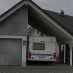 Auf der Rückfahrt nach Deutschland überqueren wir wieder den Rhein, doch bevor man die deutsche Seite erreicht, muss man durch eine industrielle Pufferzone, eine große Insel, ganz der Logistik, dem Schwertransport und der Industrie gewidmet. Ist es nicht bezeichnend, wenn der Weg zum Campingplatz zusammen mit der Beschilderung für die Gewerbezone ausgeschildert ist? Auf dem Weg aus Kehl finde ich den Warenumschlagplatz eines internationalen Logistikgroßunternehmens. Dort stehen reihenweise Campingwagen – Parallelen zeigen sich auf. Zum Abschied gibt meine Mutter mir einen Wetzstein für mein Messer mit auf den Weg! War das nicht auch der letzte Tausch, den Hans aus dem Märchen Hans im Glück durchführte, um sein Glück zu finden. Aber erst dessen Verlust brachte ihm letztlich Erlösung: „»So glücklich wie ich«, rief er aus, »gibt es keinen Menschen unter der Sonne« Mit leichtem Herzen und frei von aller Last sprang er nun fort.“